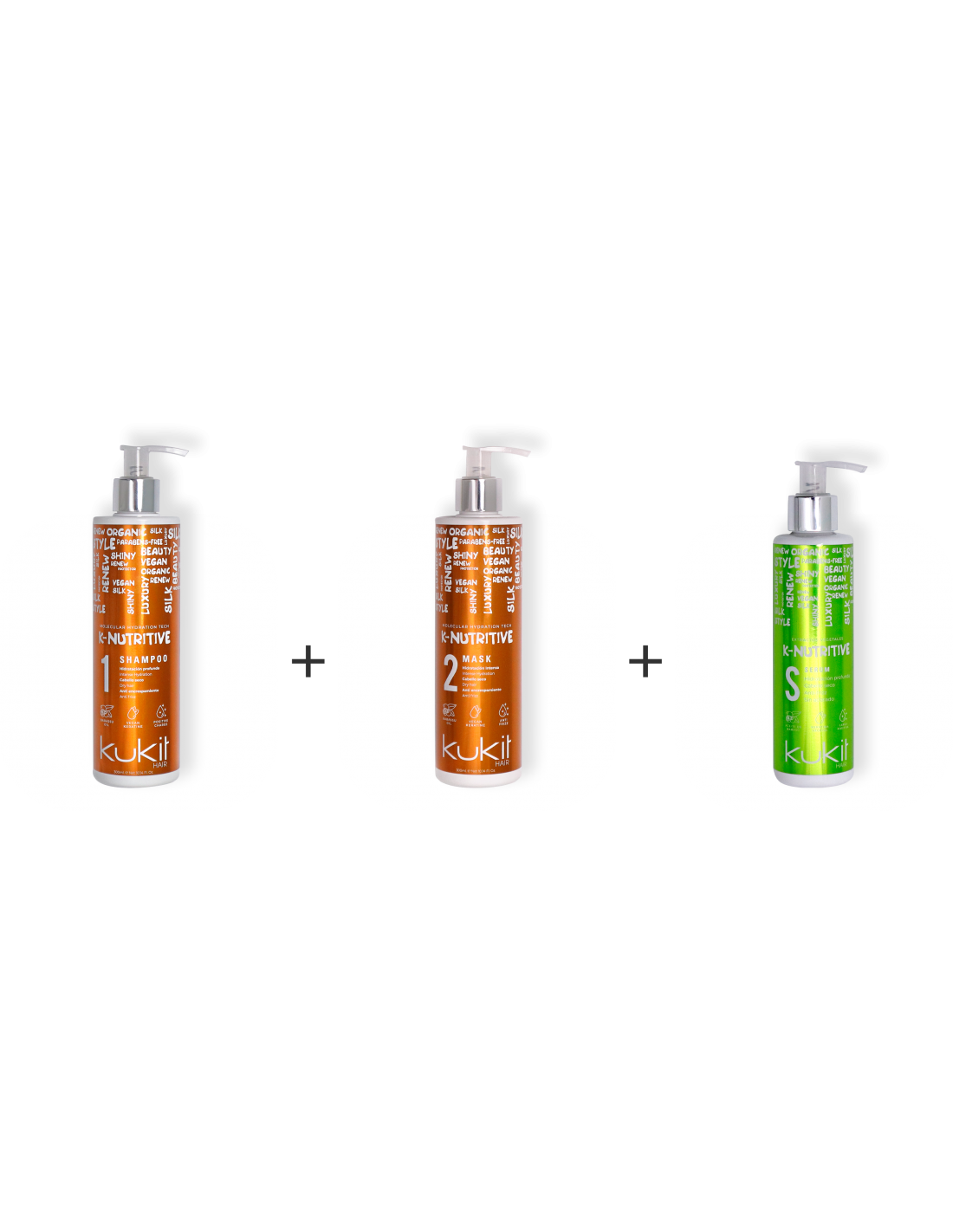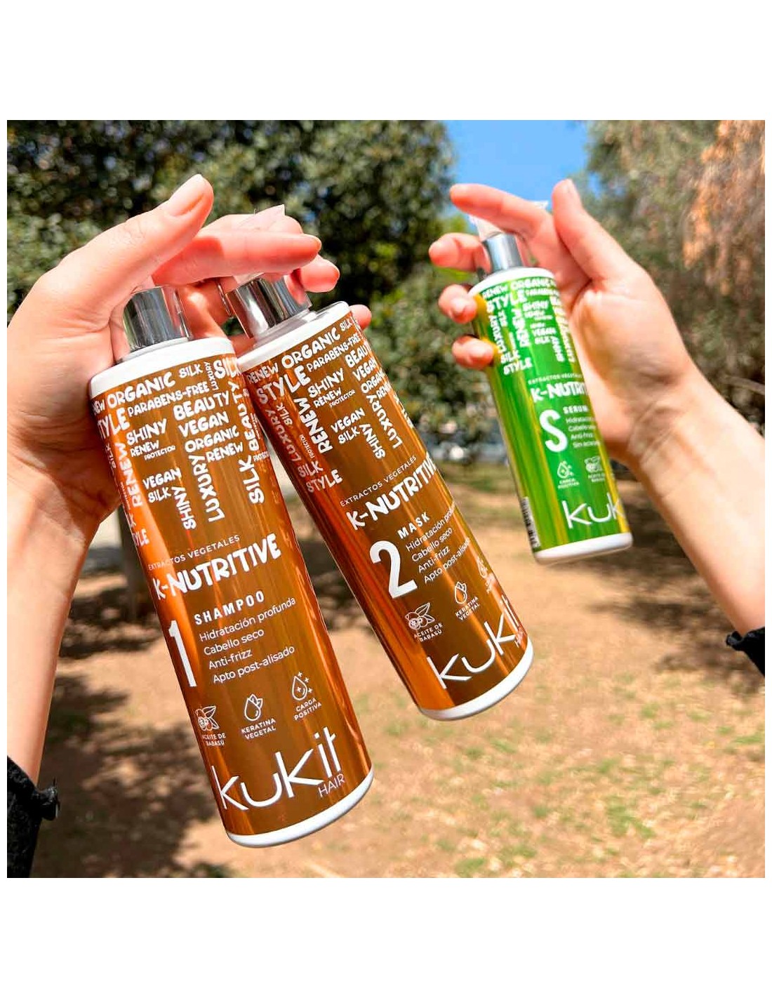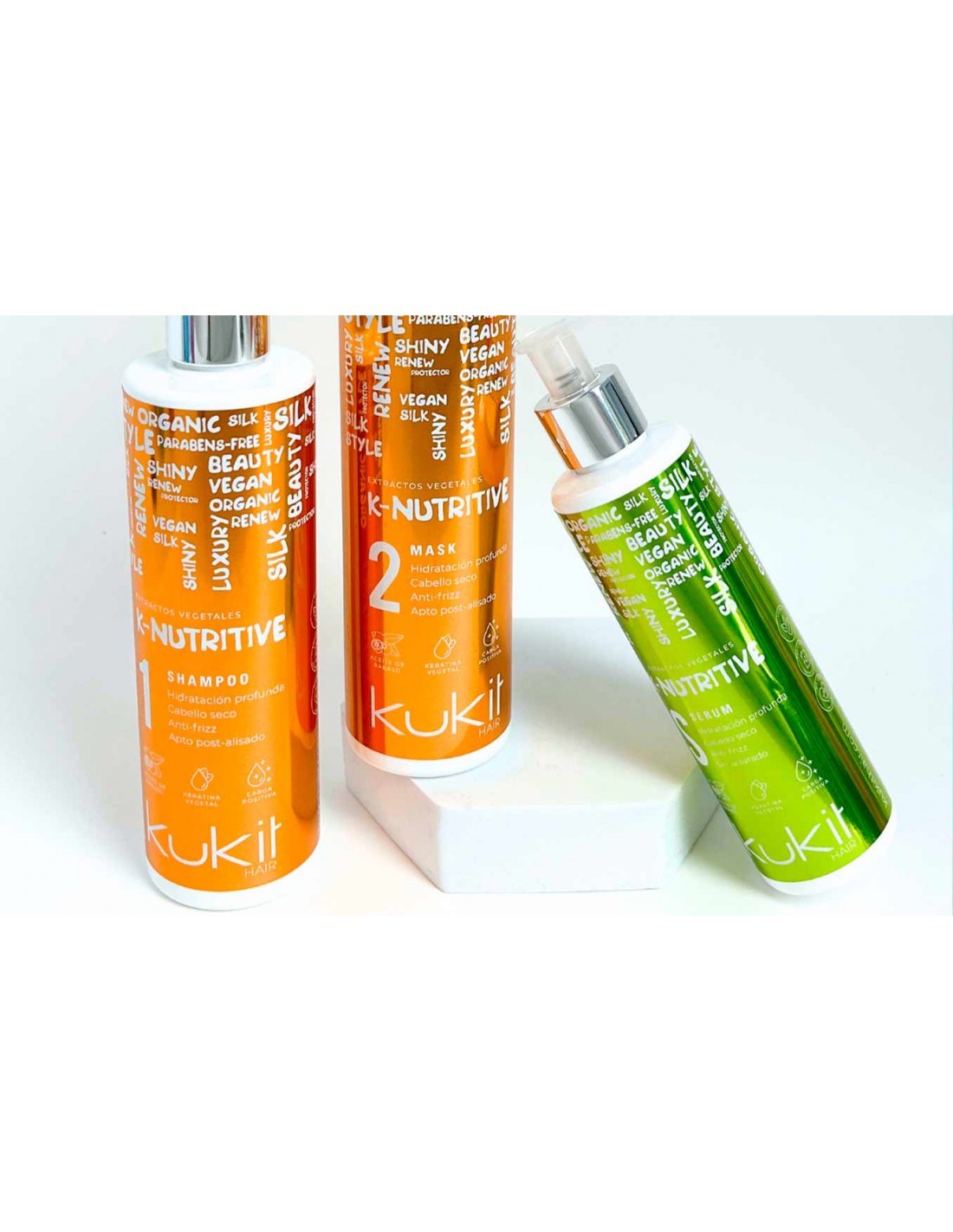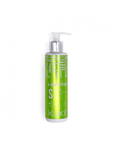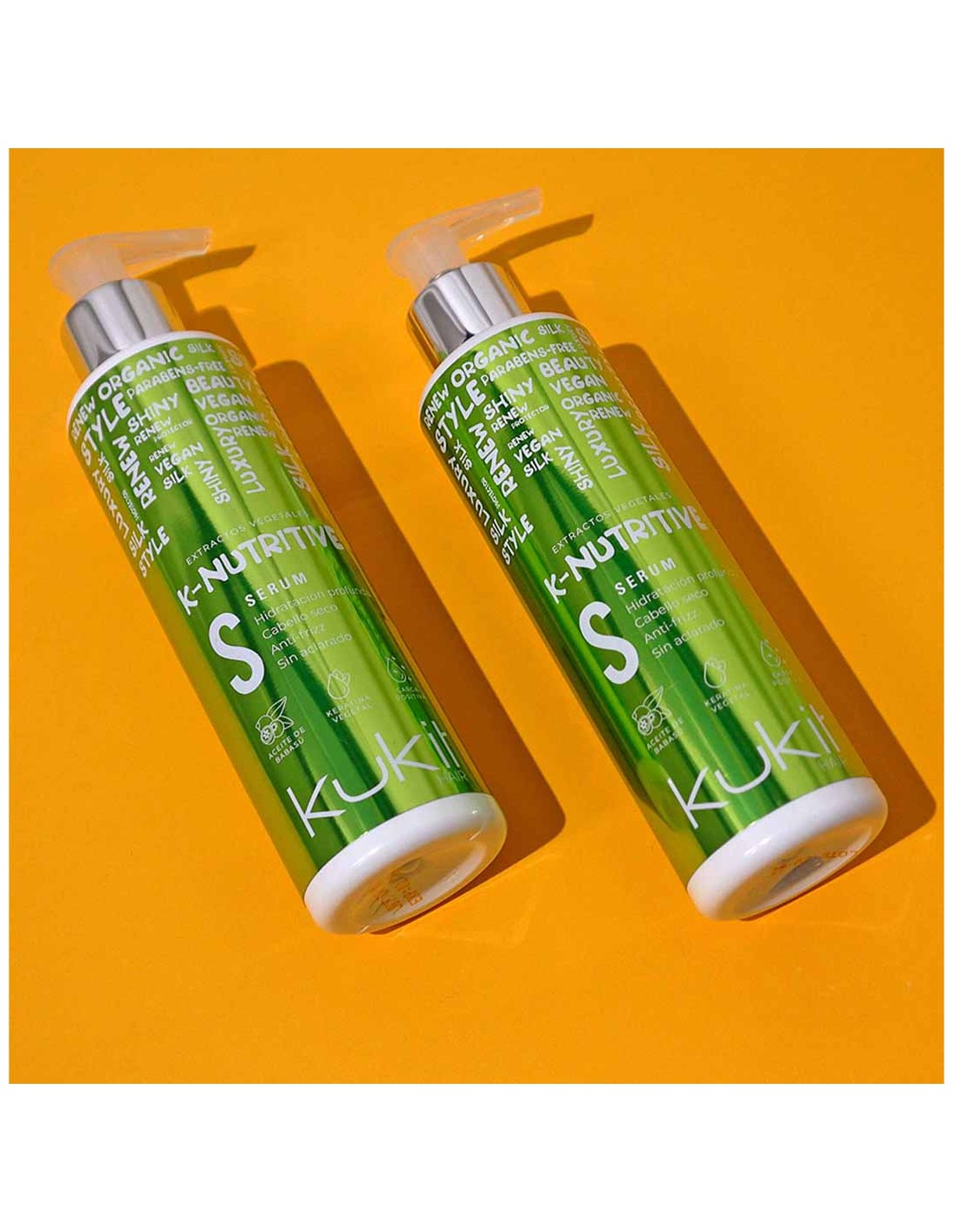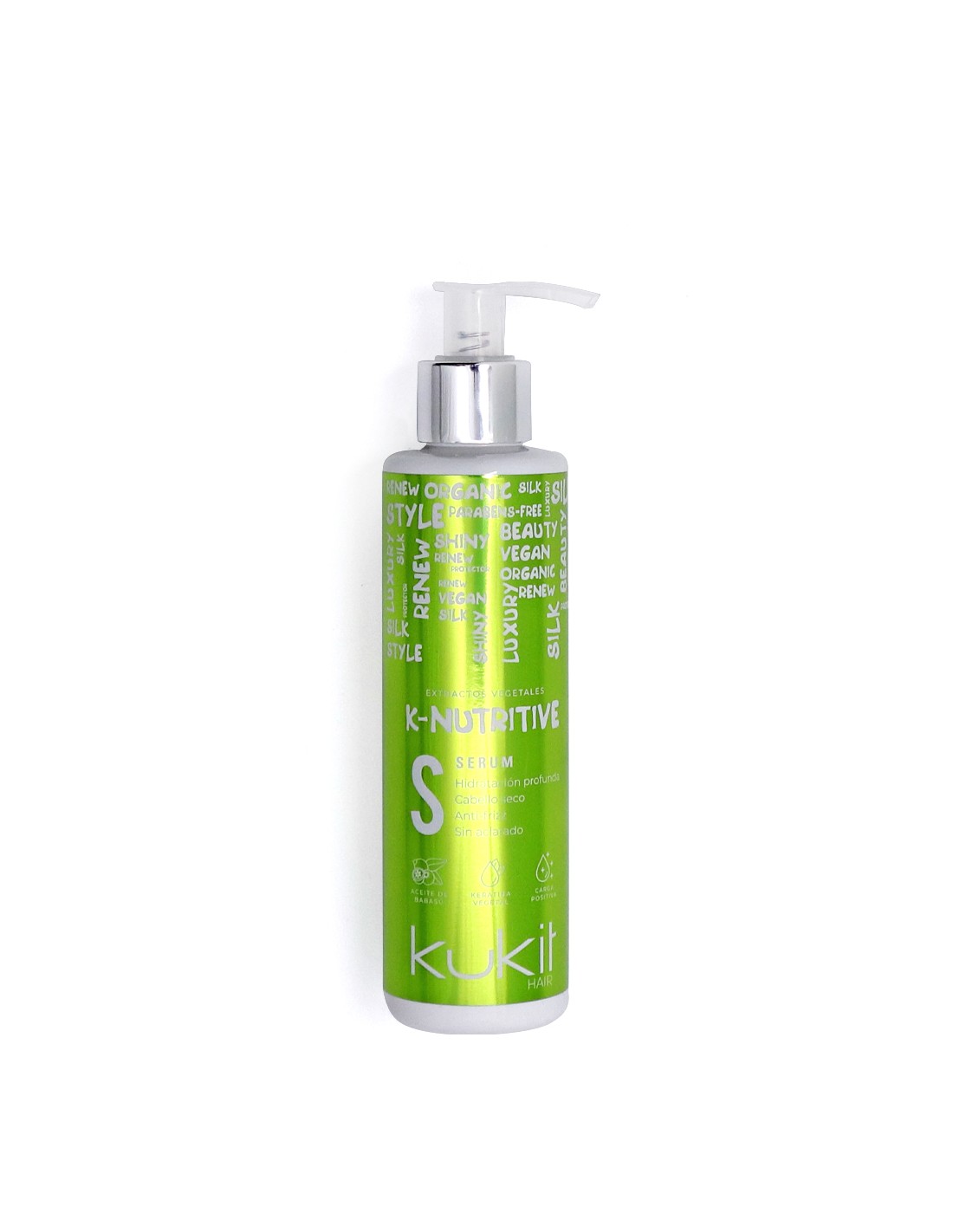 KUKIT K-NUTRITIVE SERUM 180ML es un tratamiento capilar sin aclarado de alto rendimiento, diseñado para ofrecer un acabado profesional desde casa. Su fórmula nutritiva, enriquecida con aceites naturales, actúa como protector térmico, reparador de puntas y potenciador de brillo.