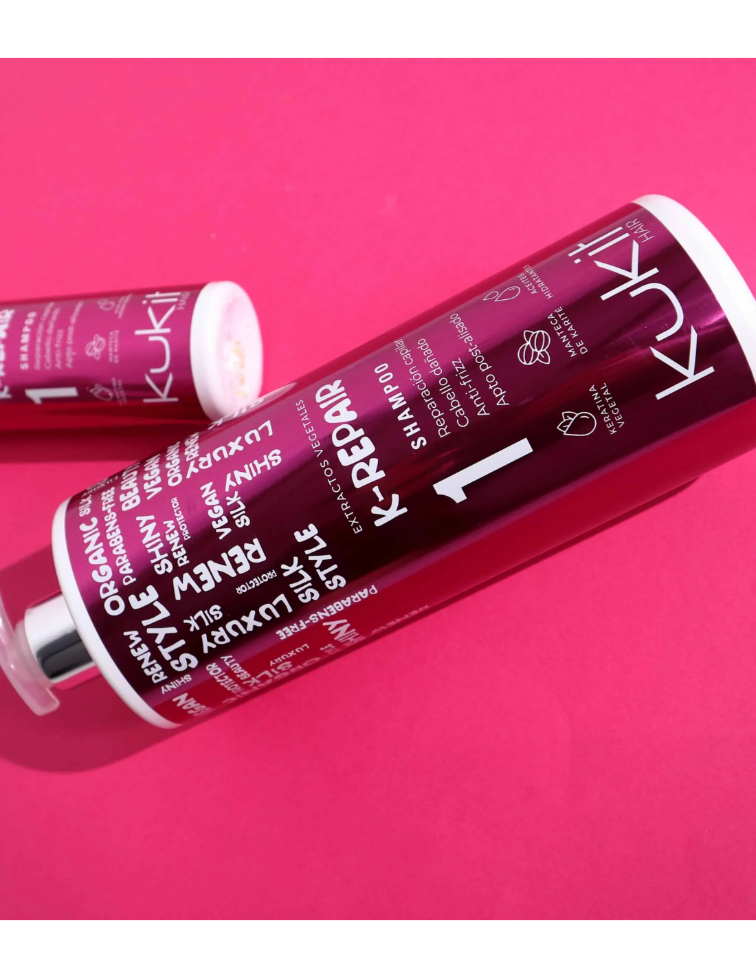 El Champú K-REPAIR limpia con suavidad mientras repara en profundidad, dejando el cabello más fuerte, suave y resistente.