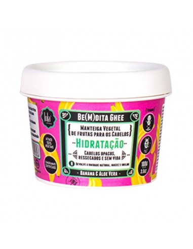 Ghee hidratante con activos vegetales de plátano, Aloe Vera, aceite de jojoba y algas. Rico en proteínas que fortalecen e hidratan el cabello debilitado, haciéndolo más suave y brillante.