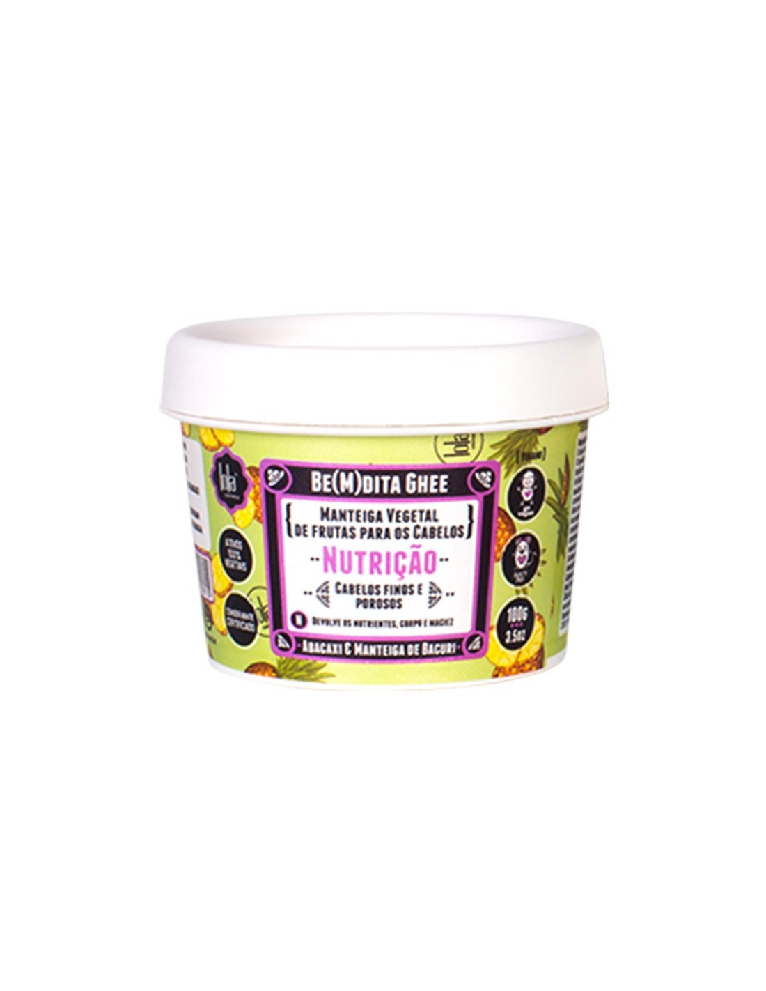 Mantequilla vegetal de frutas nutritivas, responsable de devolver los lípidos y la oleosidad presentes de forma natural en el cabello. También regresa la vitalidad, cuerpo y humedad natural, terminando con el aspecto poroso y seco del cabello.