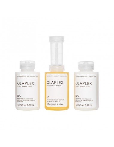 - 2 unidades de Olaplex Nº2 Bond Perfector: Repara cualquier enlace roto o dañado que se haya producido en el cabello.