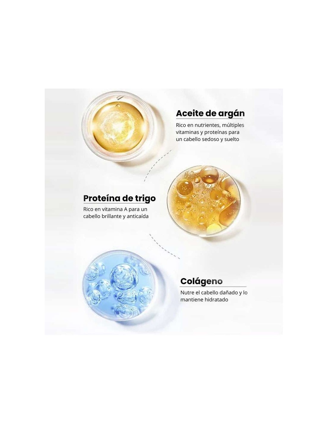 Recomendado para: Cabellos dañados, con rotura, encrespamiento o pérdida de brillo.