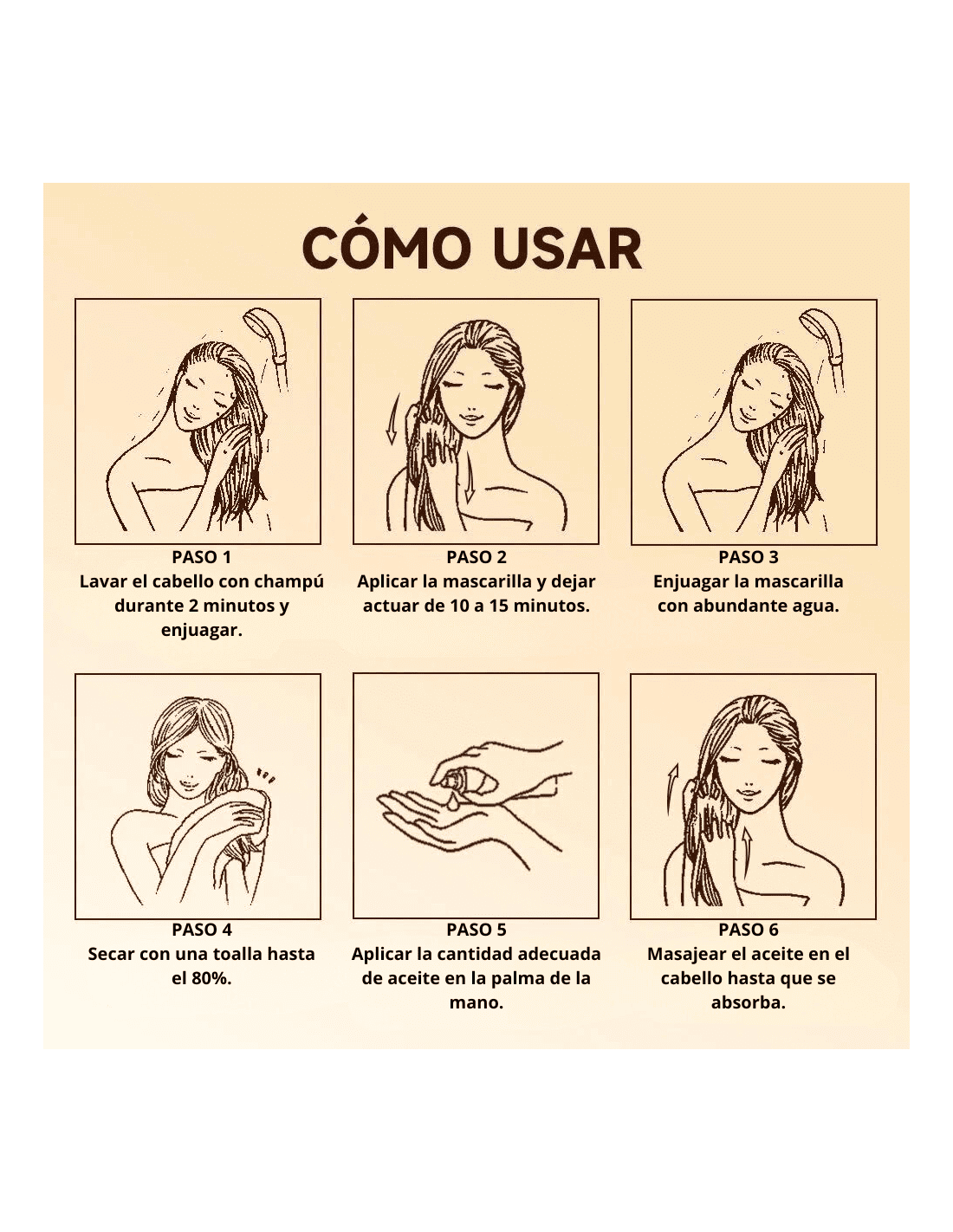 ✔ Para un tratamiento más profundo, usar gorro térmico o aplicar calor suave.
