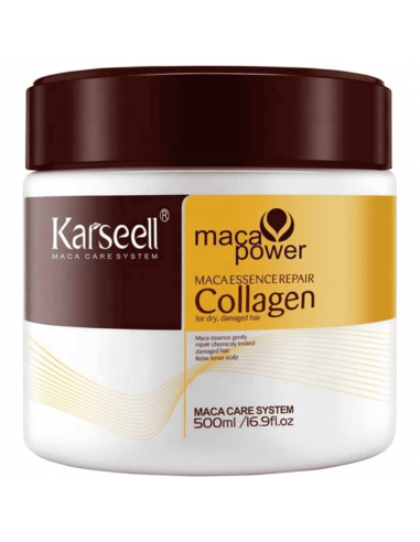 La Mascarilla Capilar Karseell Maca Care System 500ML está formulada con colágeno hidrolizado, extracto de raíz de maca andina y aminoácidos esenciales para proporcionar una reparación profunda, hidratación intensa y nutrición a la fibra capilar.